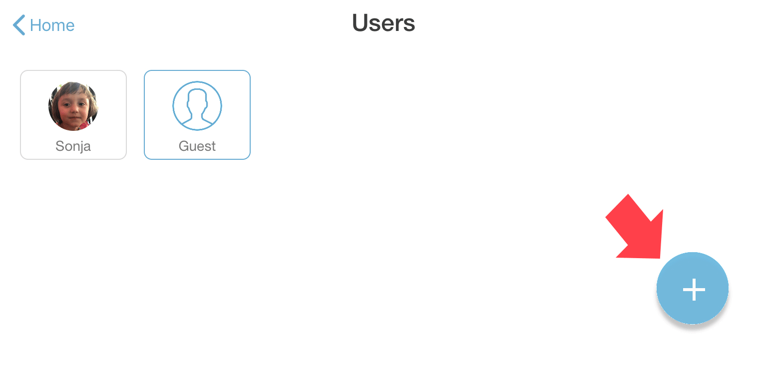 On the main user page, you can either select a user, select the guest account or click on the plus button to add a new user.
