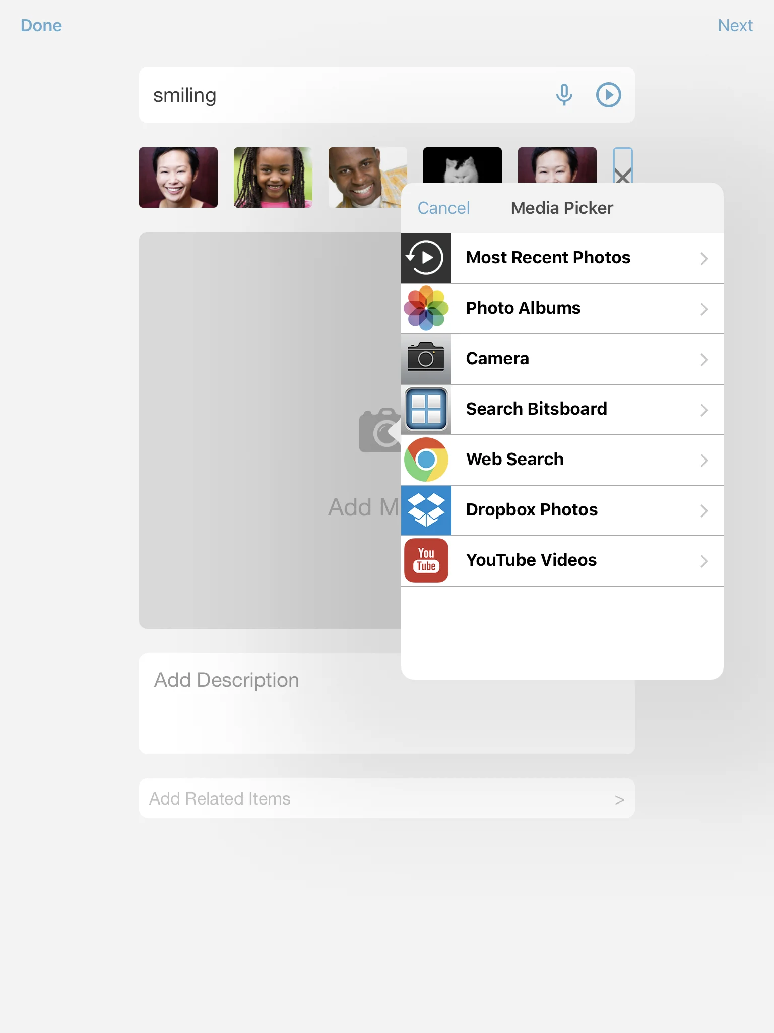 As soon as you tap on Add Photo you will see the following options.